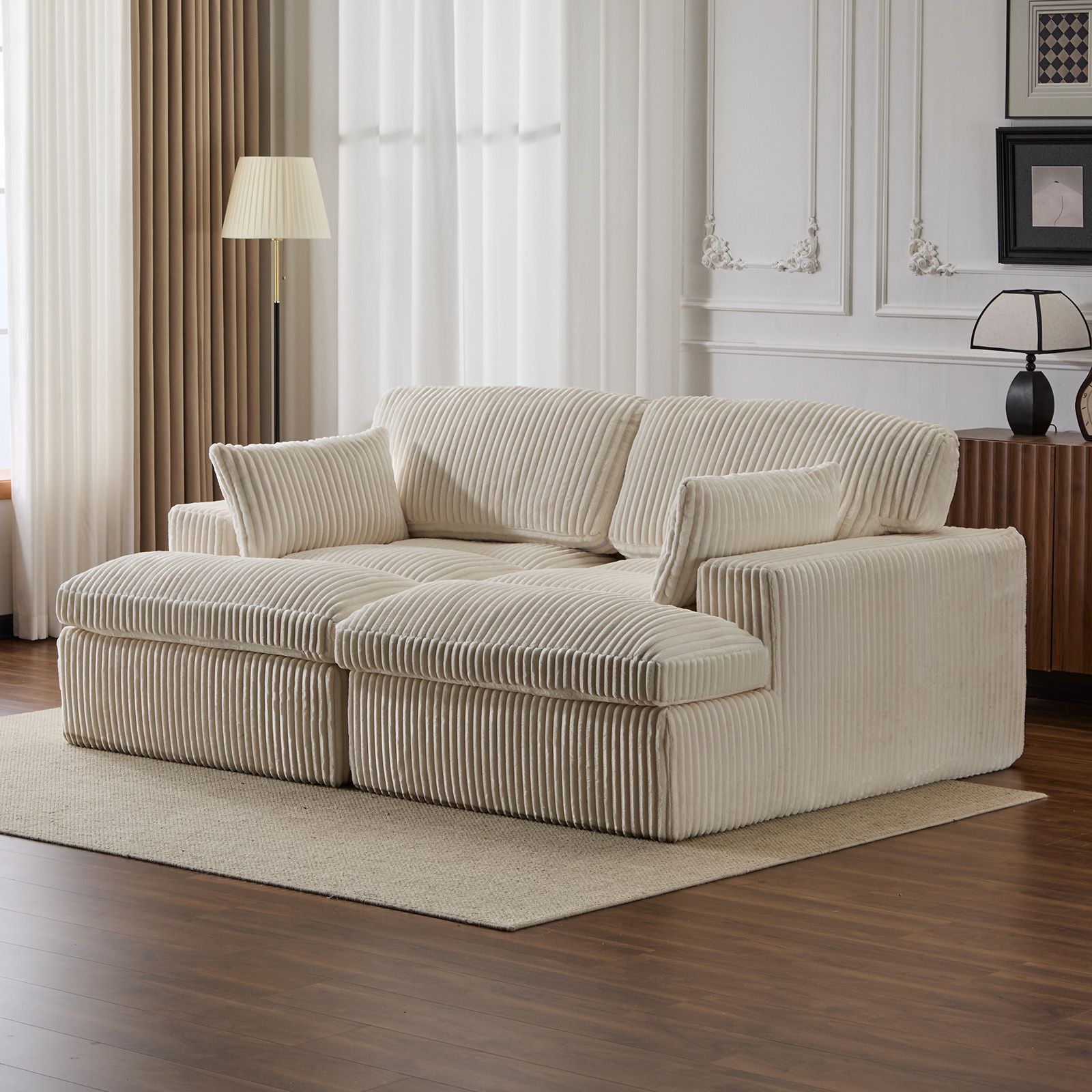 [Corduroy Comfort with Supportive Cushions]Wrapped in tactile corduroy, this sectional offers a comfortable feel. Foam-filled cushions provide support during movie or game nights, ensuring comfort through out.