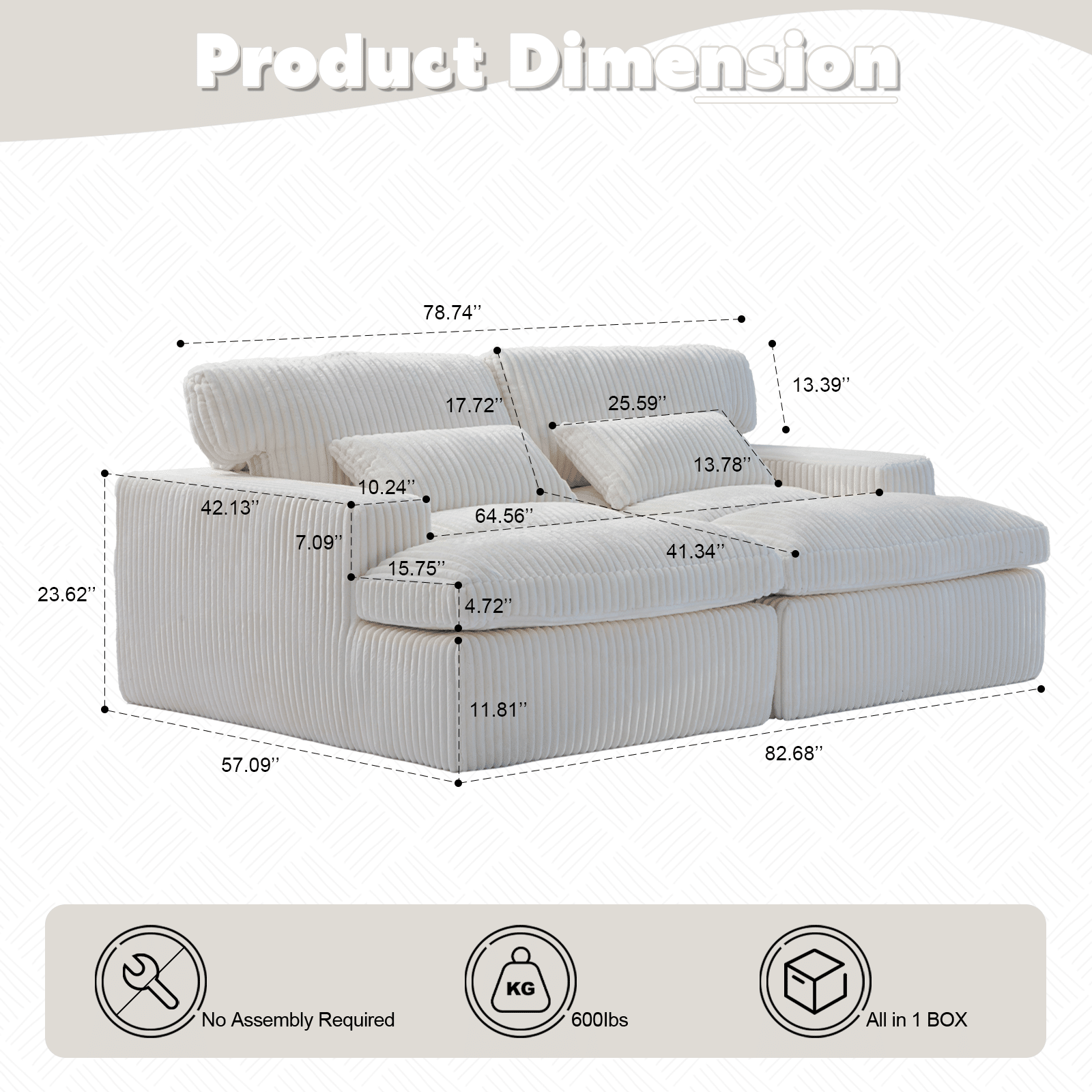 [No Assembly Required for Immediate Enjoyment]Skip the hassle of assembly. Simply unbox and wait for about 72 hours to decompress to start enjoying your new sectional sofa right away for a seamless addition to your home.