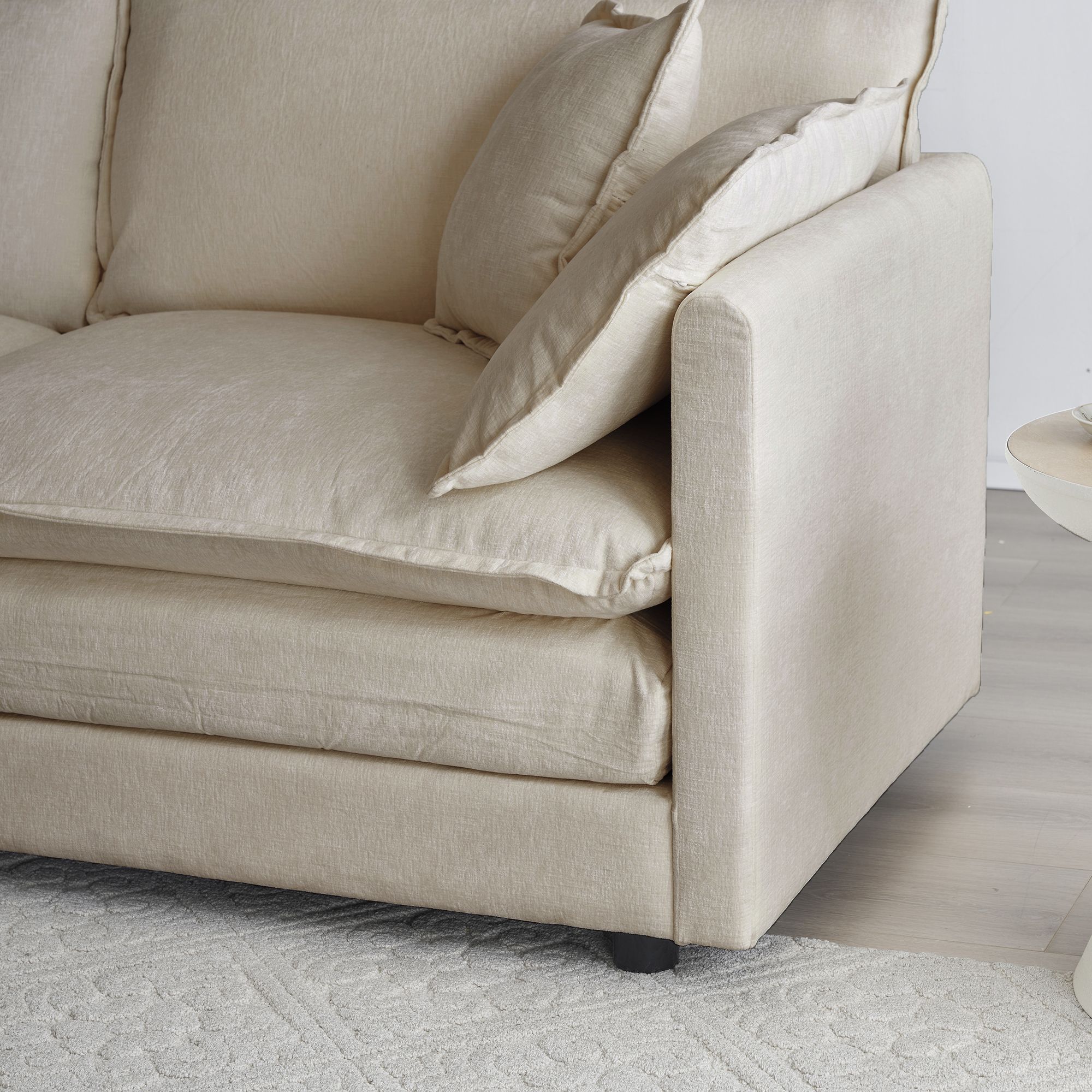 Mid-Century Modern Couch 3-Seater Sofa with 2 Armrest Pillows and 3 Toss Pillows, Couch for Living Room Beige Chenille Mid-Century Modern Couch 3-Seater Sofa with 2 Armrest Pillows and 3 Toss Pillows, Couch for Living Room Beige Chenille Mid-Century Modern Couch 3-Seater Sofa with 2 Armrest Pillows and 3 Toss Pillows, Couch for Living Room Beige Chenille