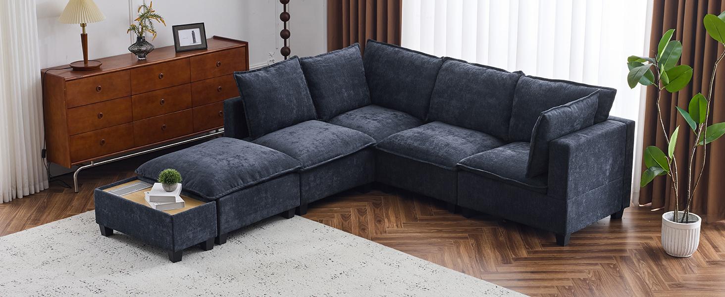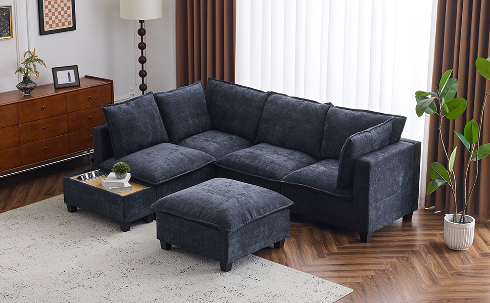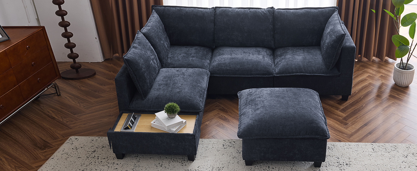Free Configurations -This sofa offers exceptional flexibility with its innovative design that allows you to effortlessly reconfigure it into either a U-shaped or L-shaped layout. Whether you're hosting a large gathering, enjoying a cozy movie night, or creating a more intimate seating arrangement, this sofa adapts to your space and needs. The ottoman and coffee table are easy to move and arrange, making it perfect for both spacious living rooms and more compact areas.